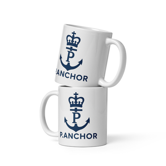 P.ANCHOR Royal Anchor Logo Mug – Luxury White Nautical Cup