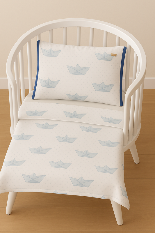 BEBE Collection“Paper Boat – Baby Pillow & Sheet Set” by P. ANCHOR